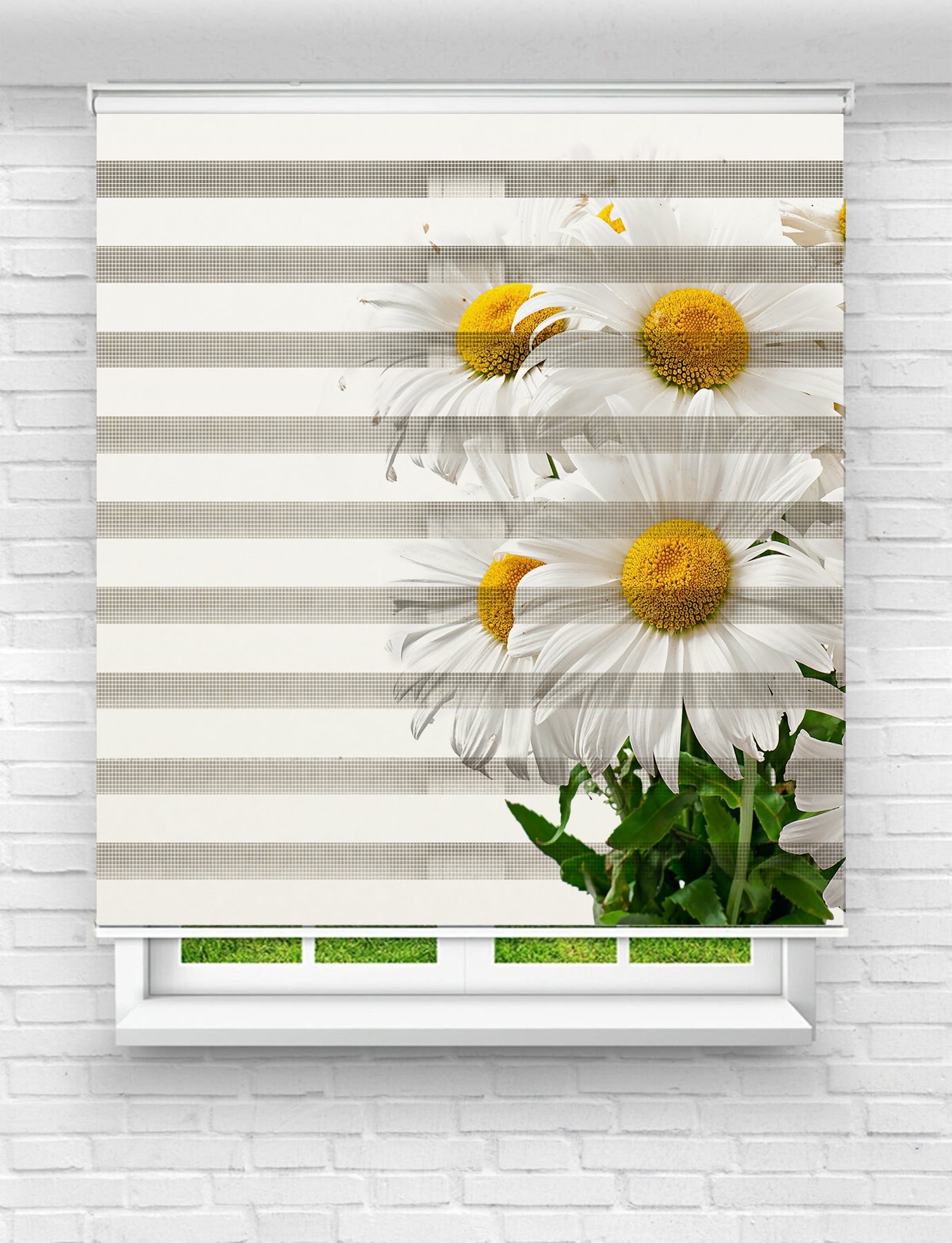 Çiçeklerle Bezenmiş Nazik Papatya Baskılı Zebra Perde