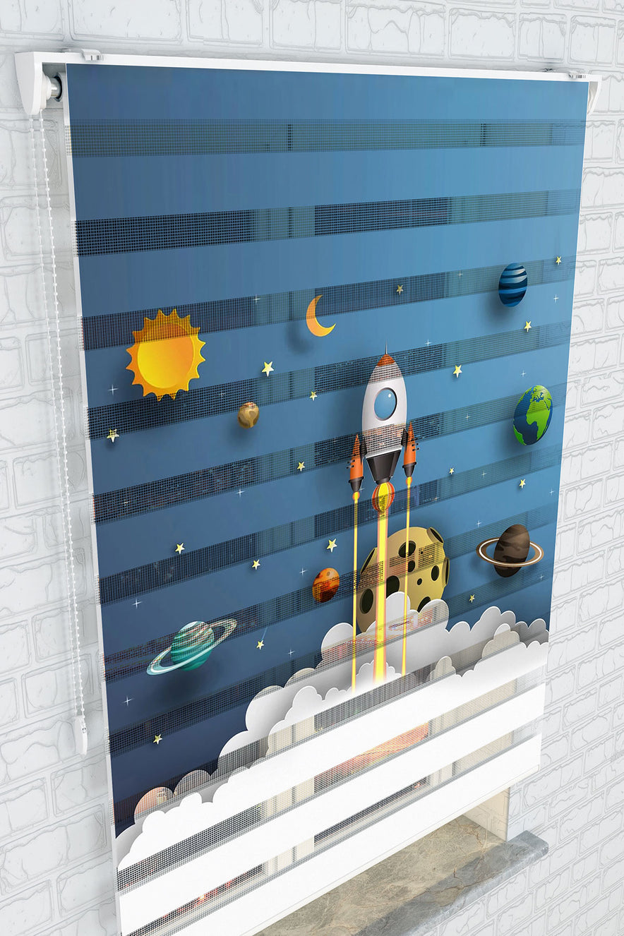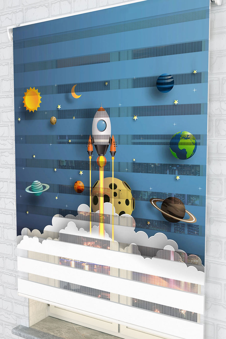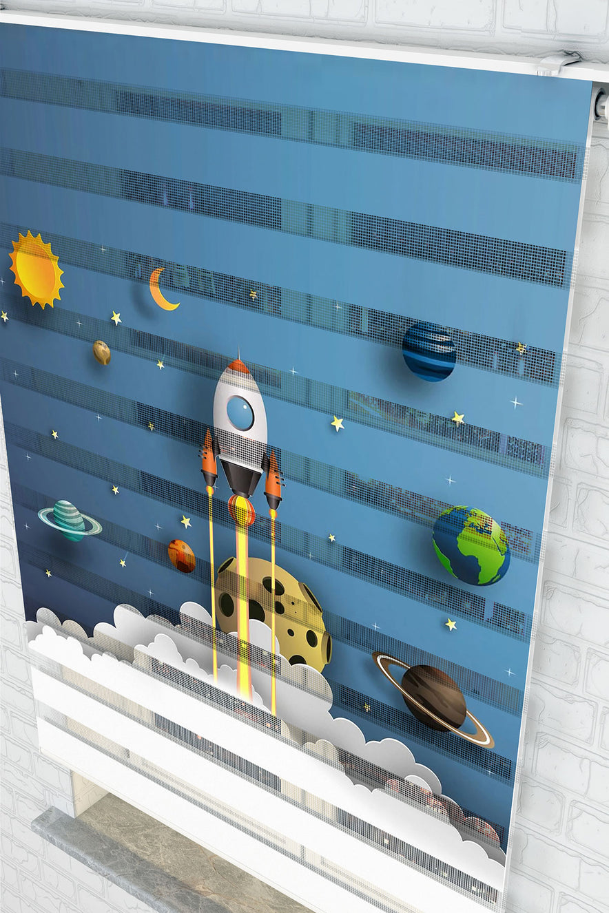 Roket Fırlatma ve Gezegenler Zebra Perde