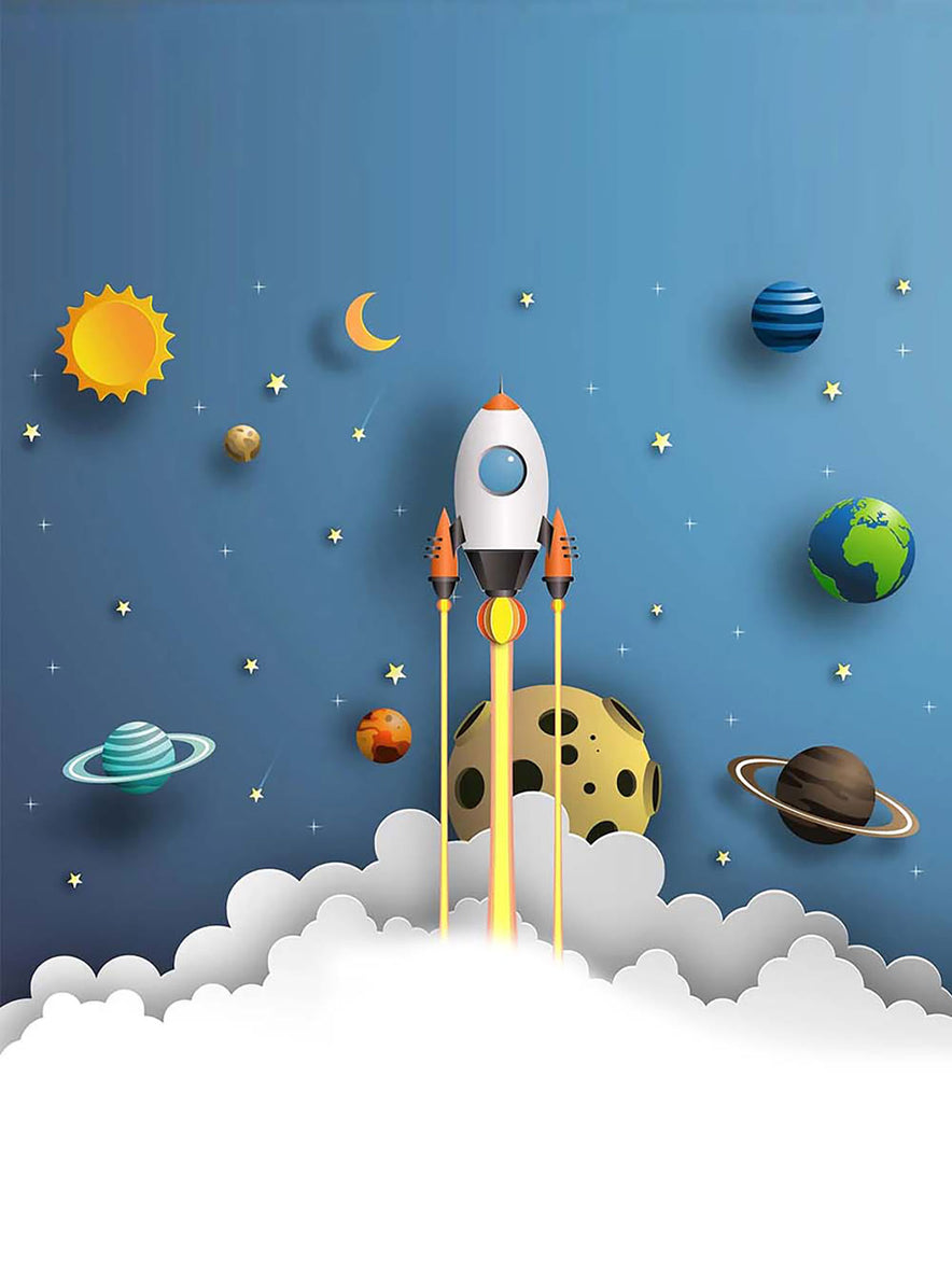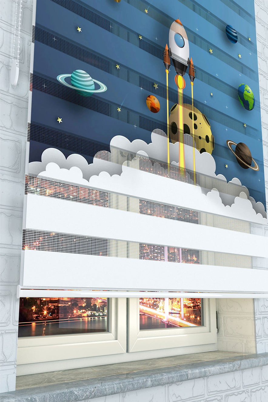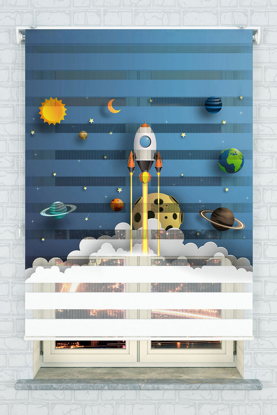 Roket Fırlatma ve Gezegenler Zebra Perde
