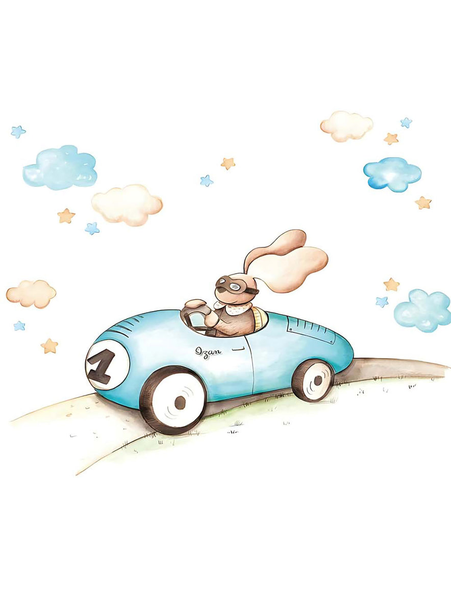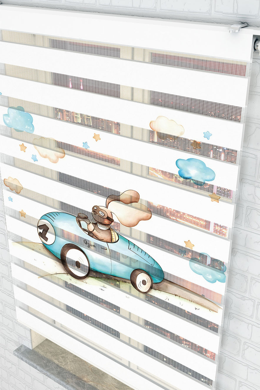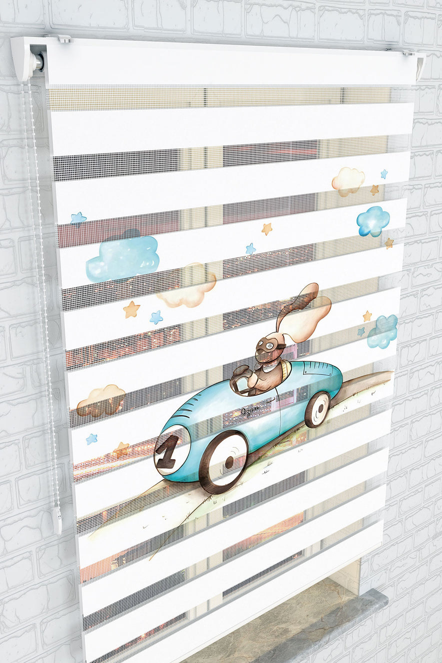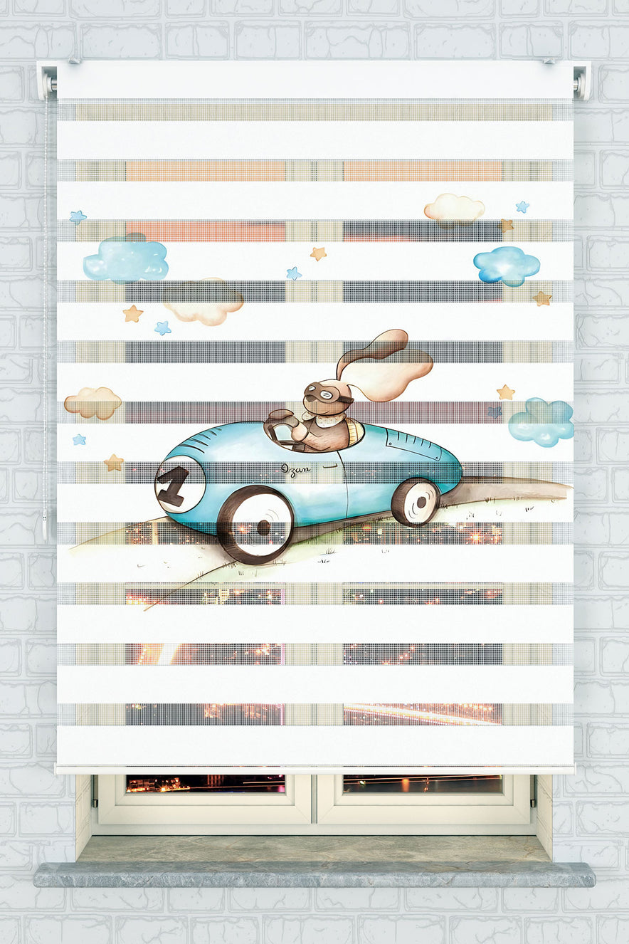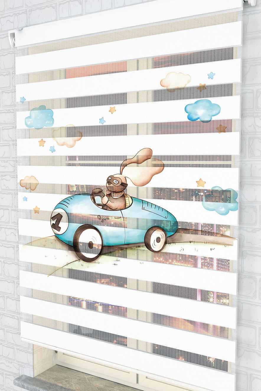 Yarışçı Tavşan ve Bulutlar Desenli Zebra Perde