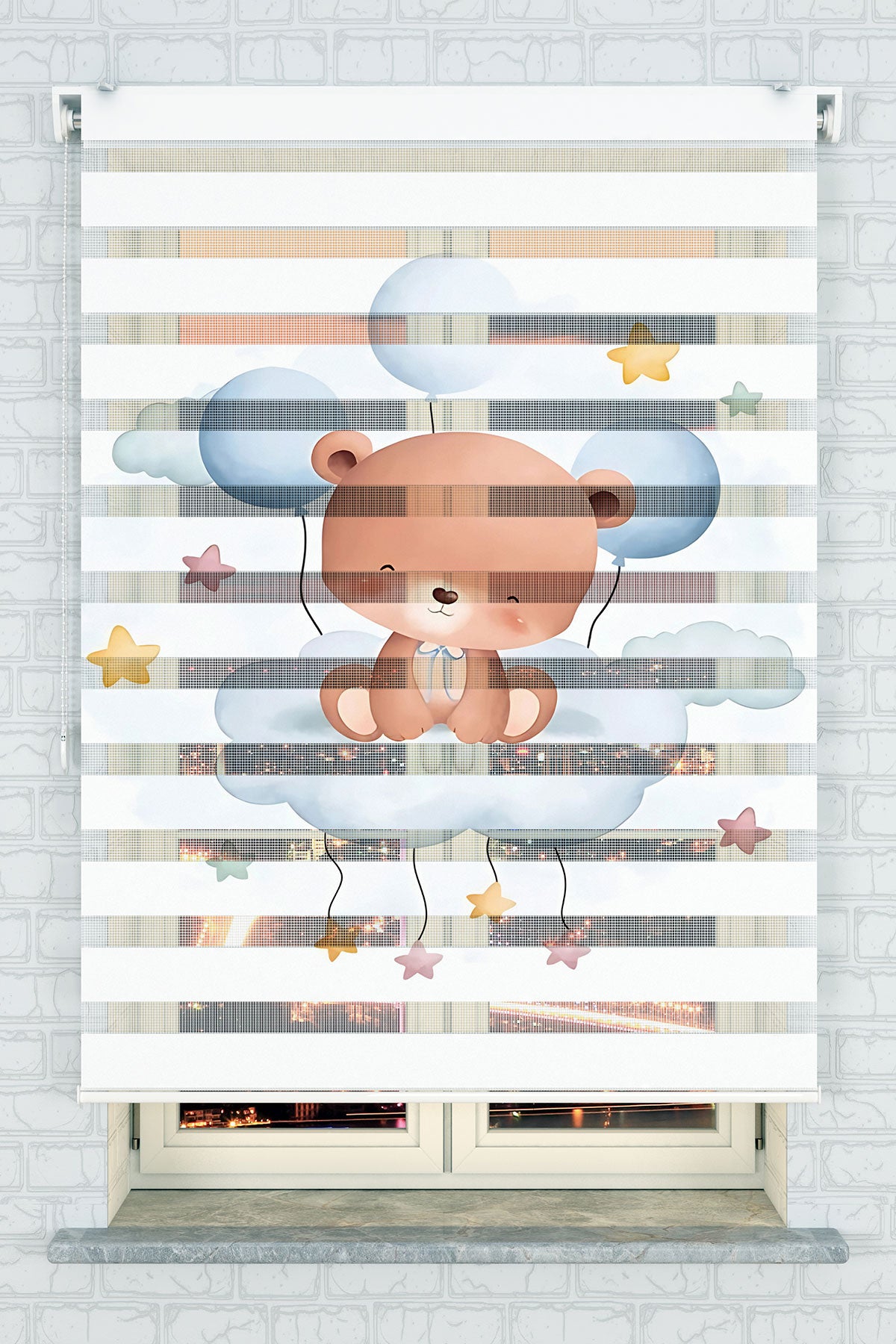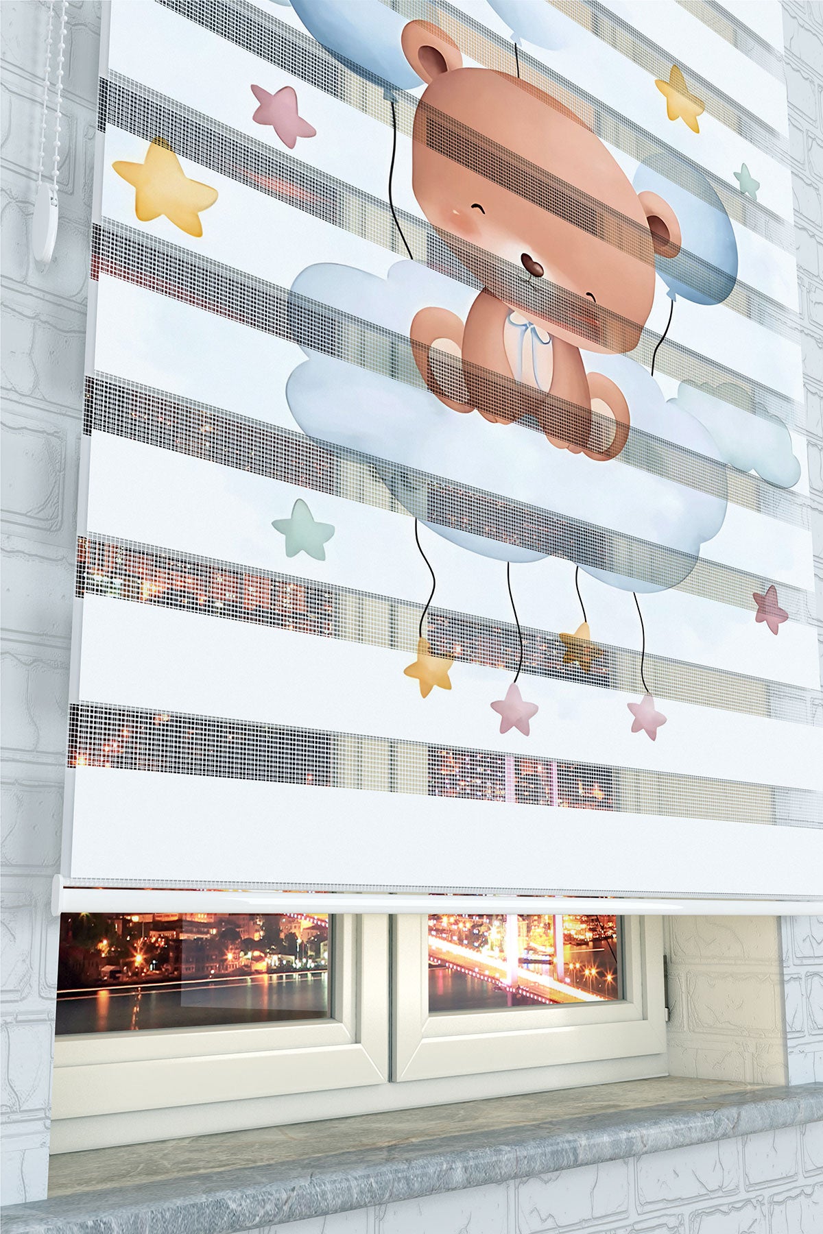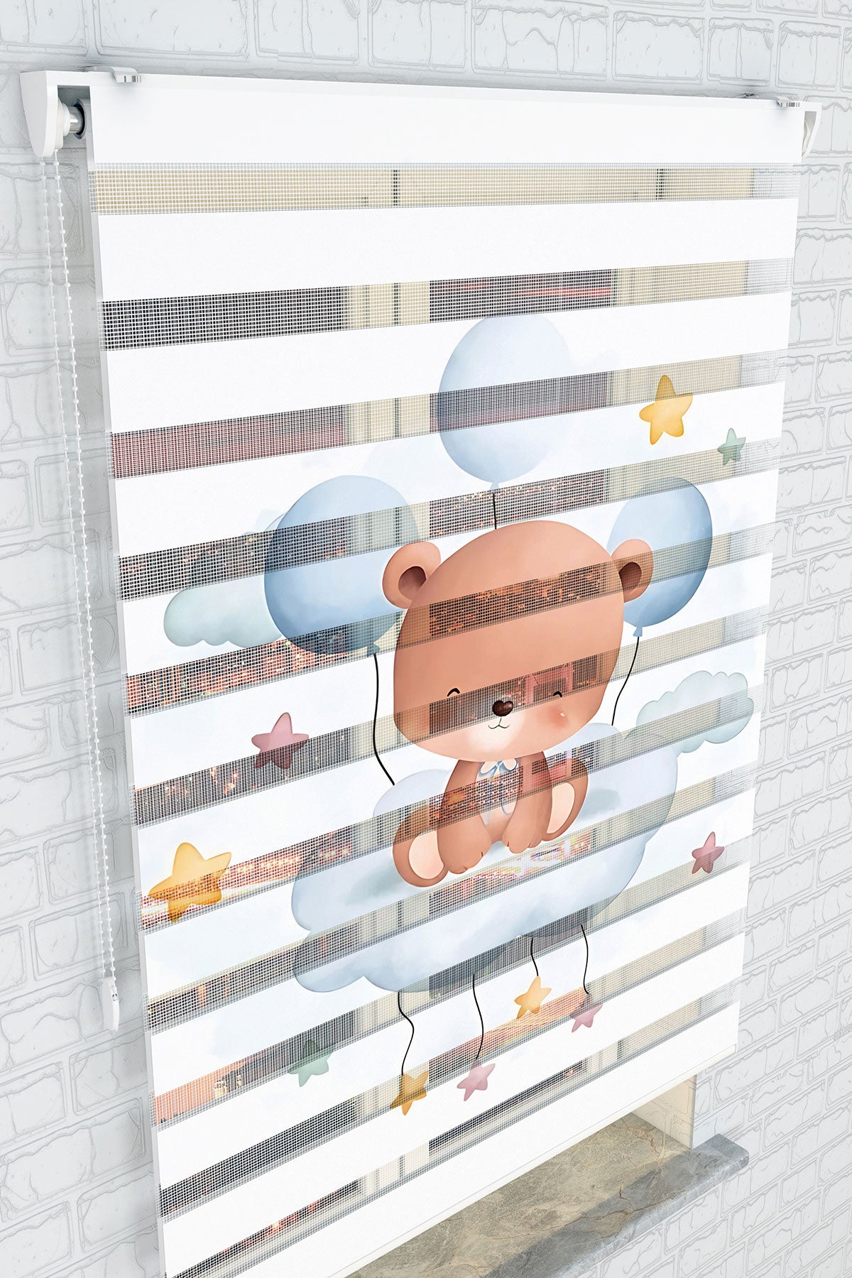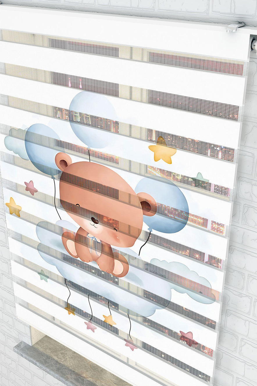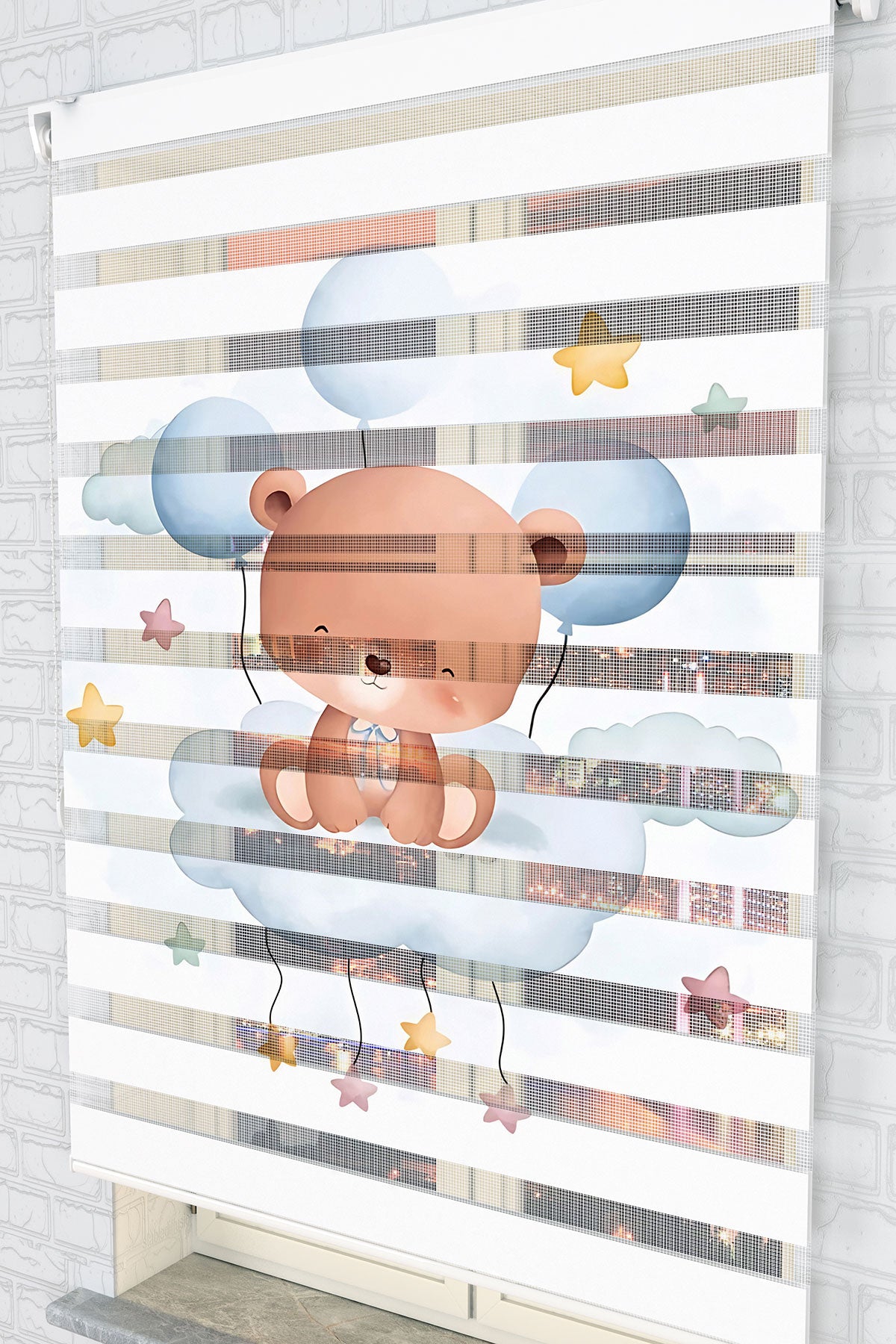Uçan Balonlu Sevimli Ayıcık Zebra Perde