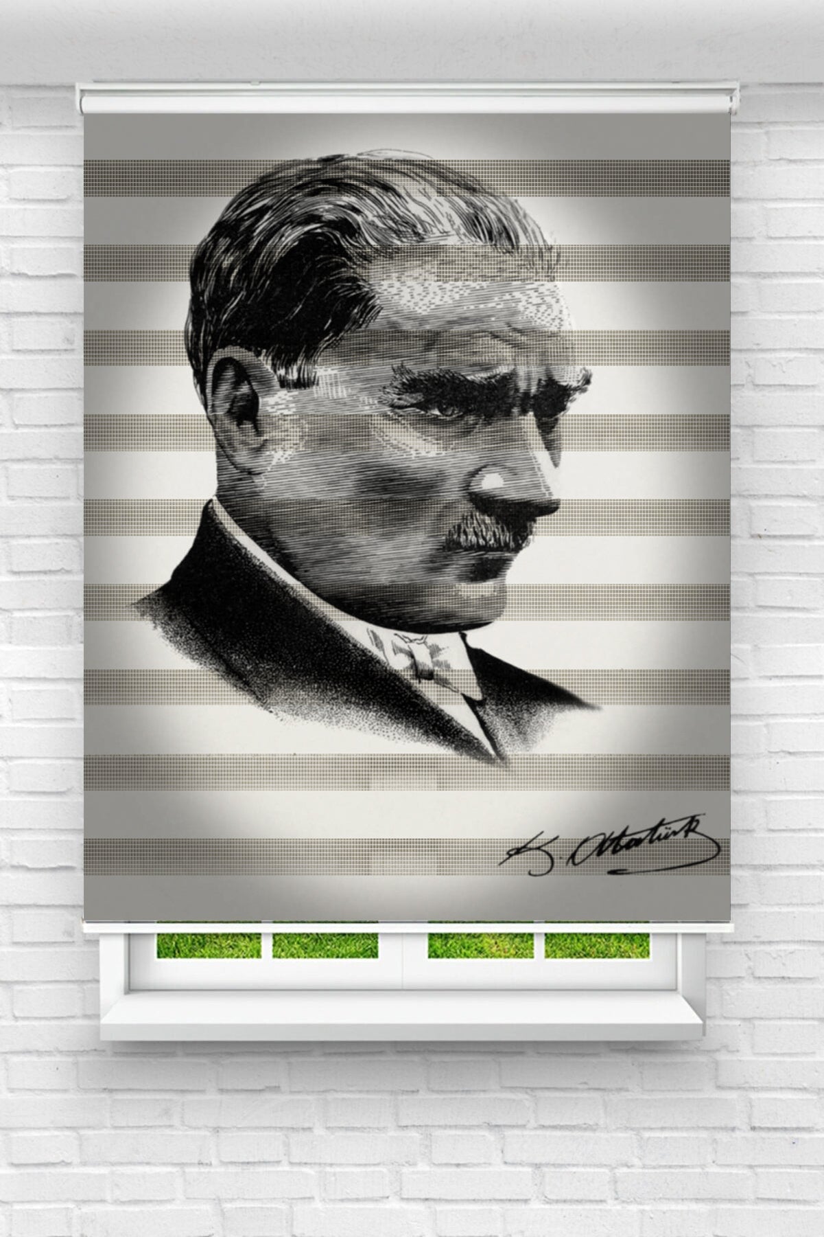 Mustafa Kemal Atatürk Baskılı Zebra Perde